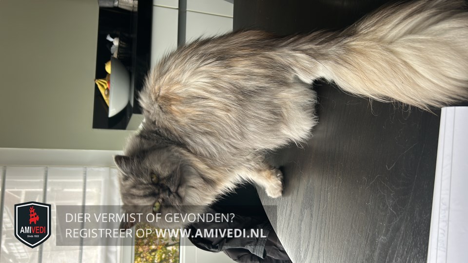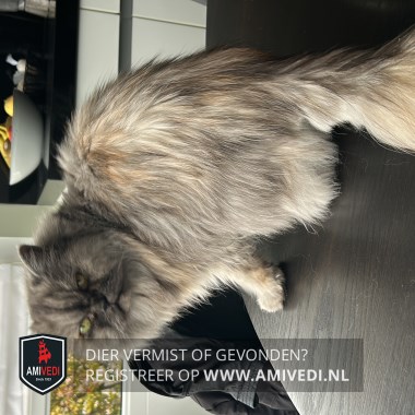 | Signalement | Perzische poes in grijs- en bruintinten. Kopje is donkerder, lijfje in meerdere tinten gemêleerd. LET OP: geen buitenkat! |