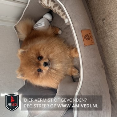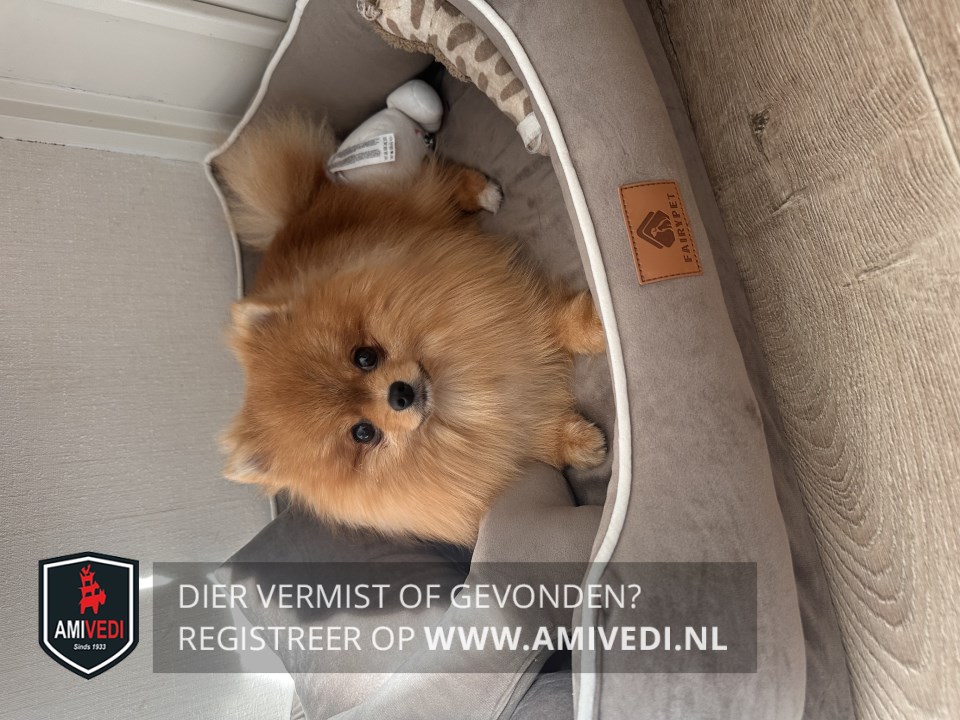 | Signalement | Pomeriaan / dwergkeeshond in rood, aan het linkerachterpootje witte teentjes |