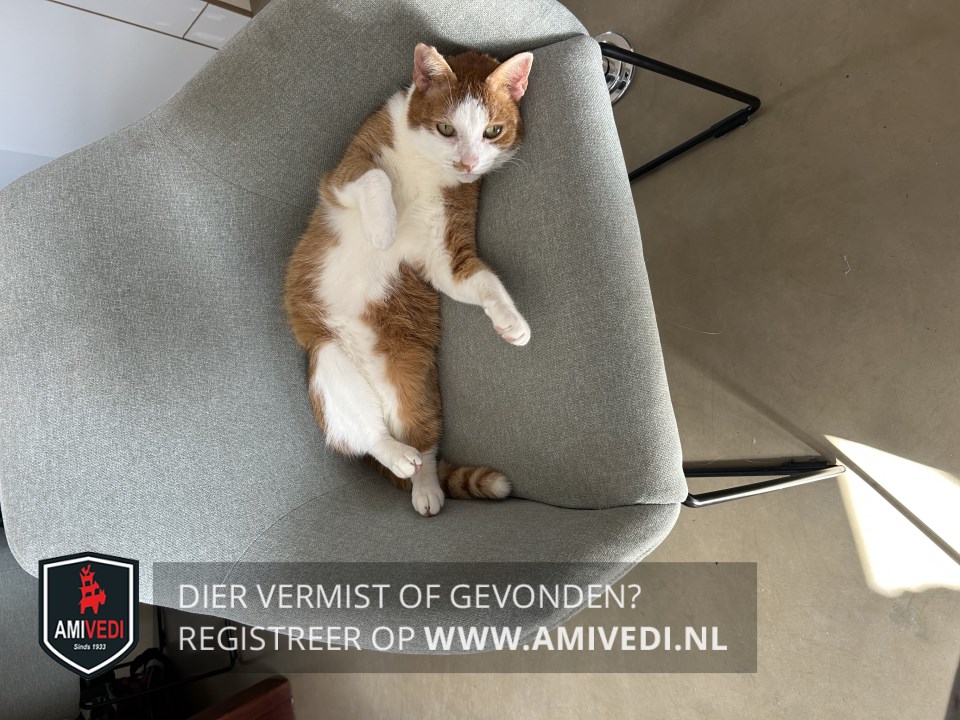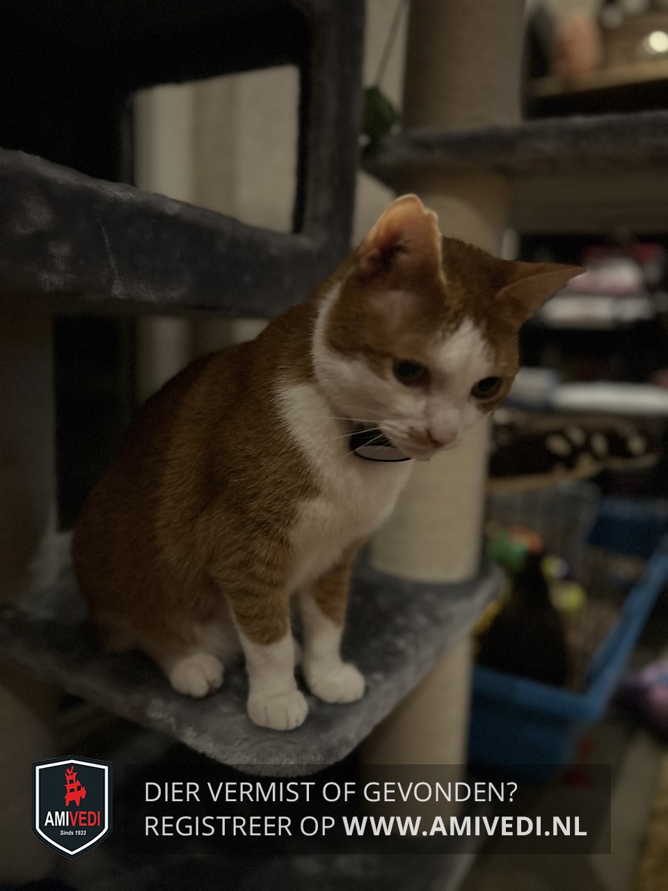 | Signalement | Pikkie is een rood/oranje katertje met een witte bles, een wit snuitje met een oranje vlekje bij de neus. Verder een witte bef die doorloopt op zijn buikje en hij heeft witte sokjes. Hij heeft een chipje uit zijn oor. |