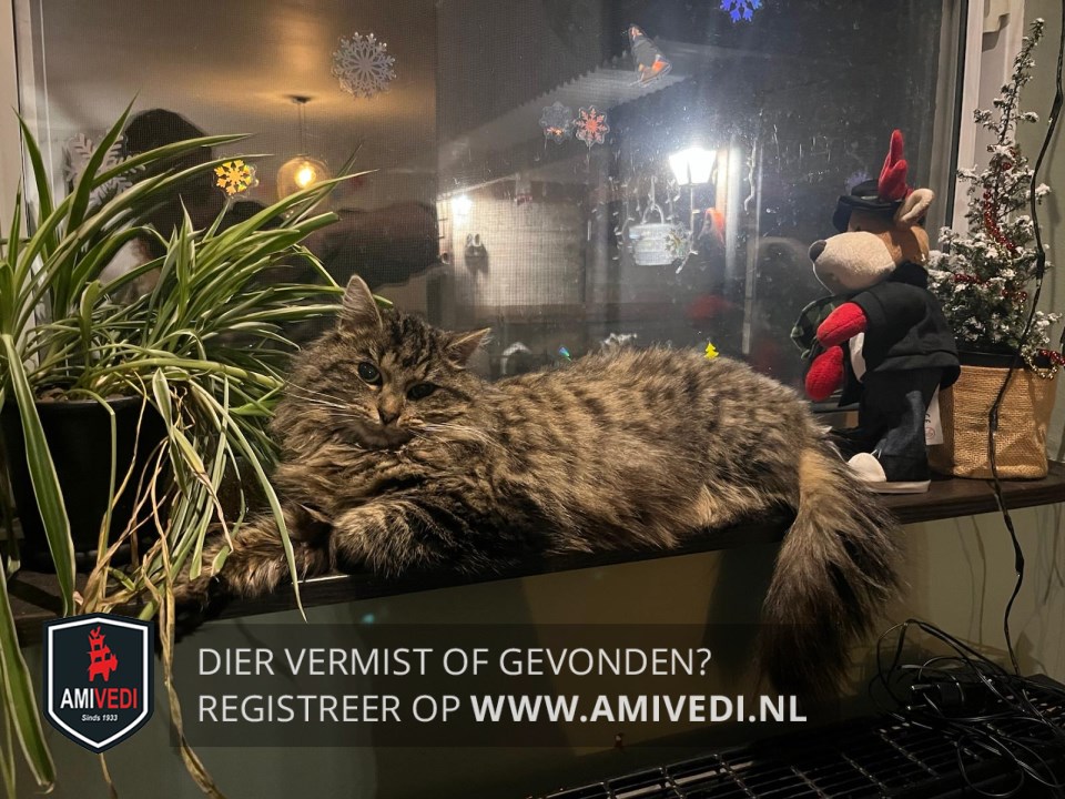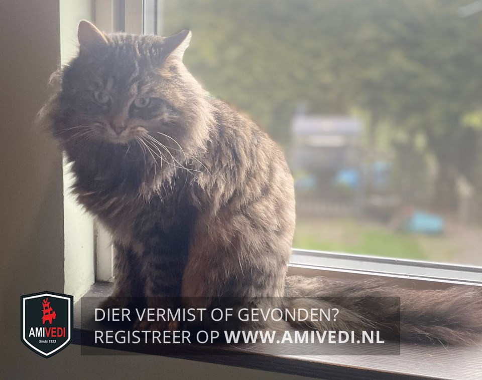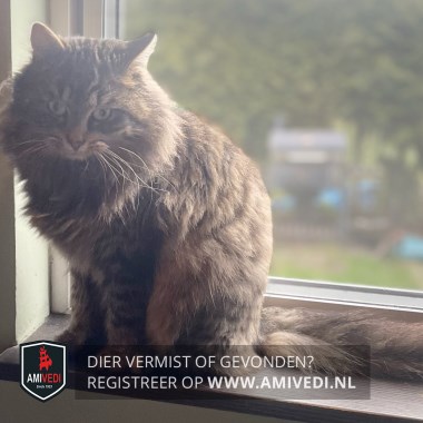 | Signalement | Beige/bruin met grijs iets gestreept, lang harig, Iets kaal in de nek en liezen. Zwanger |