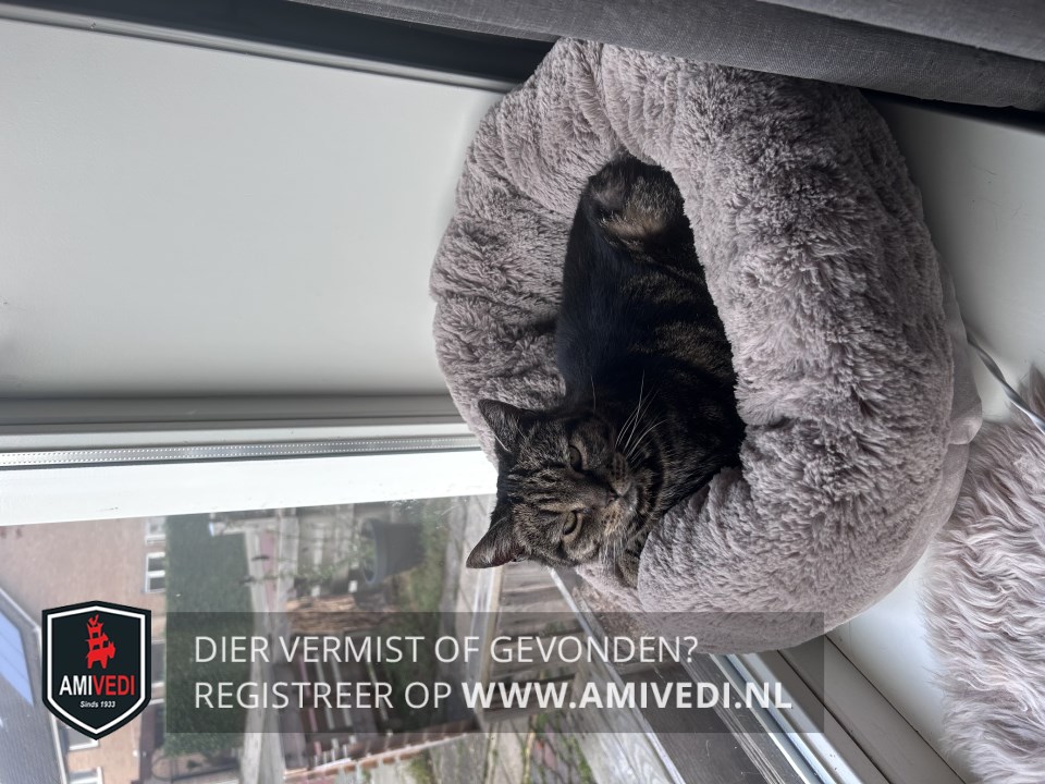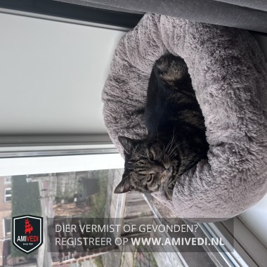| Signalement | Kleine geheel cypers bruin-zwart gemarmerde poes. |