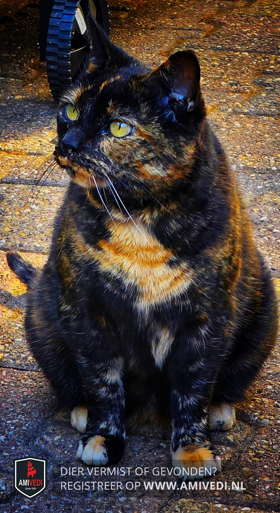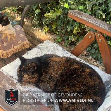 | Signalement | Een schildpad poes, een lichte vlek op de borst |