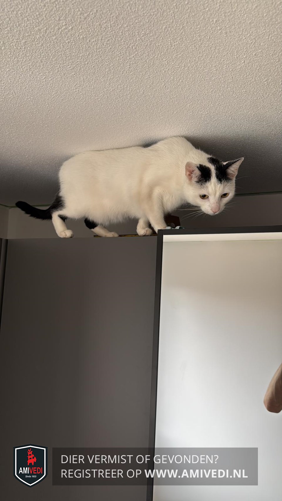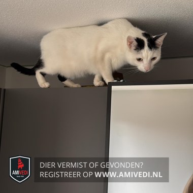 | Signalement | Witte kat met zwart vlekken bij de oortjes, zwarte plekken op rug en poten, zwarte staart. |