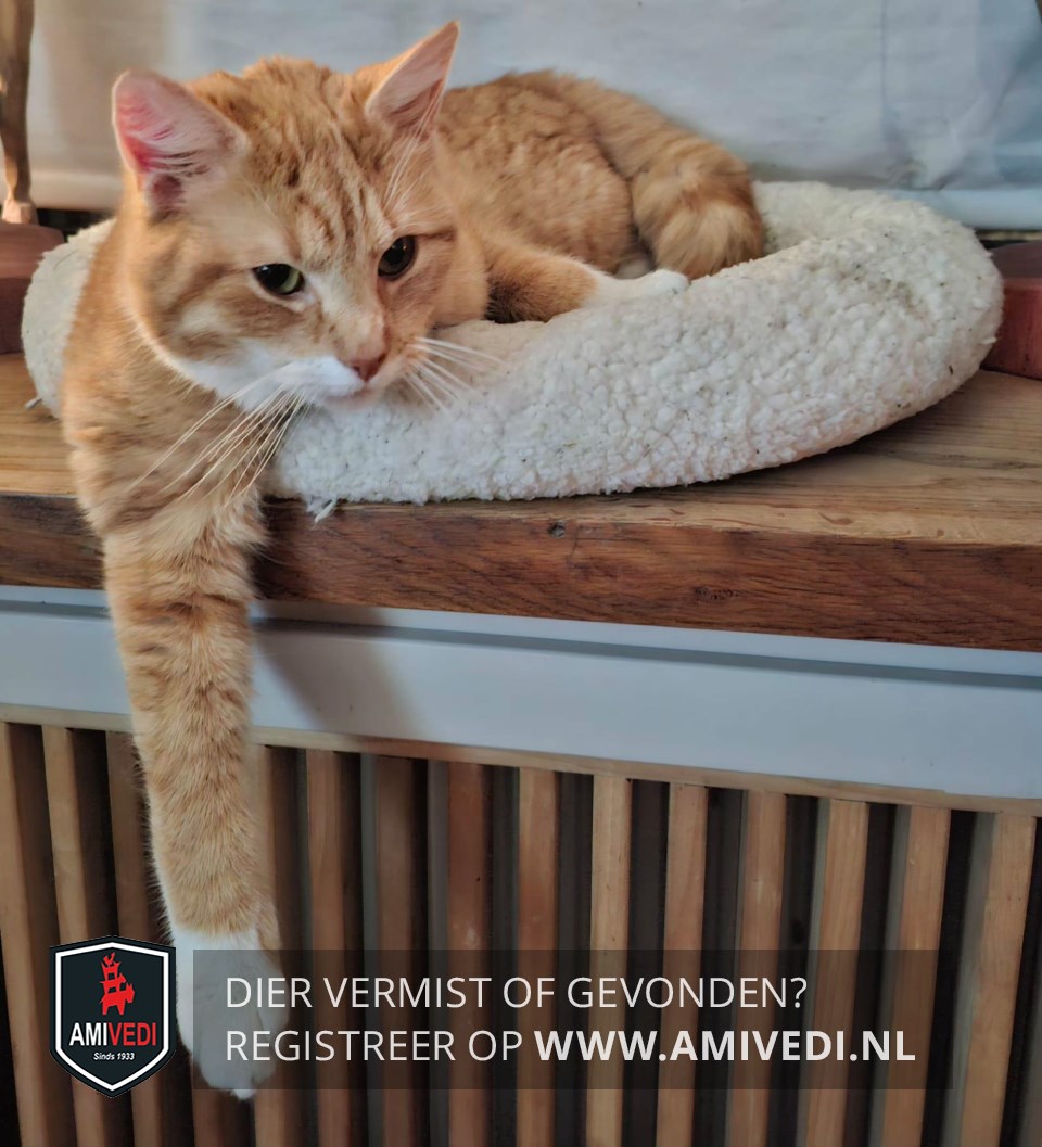 | Signalement | Cypers rood gestreept met wit Witte snor, witte borst doorlopend tussen de voorpoten, witte korte sokjes voor, witte sokjes achter. |