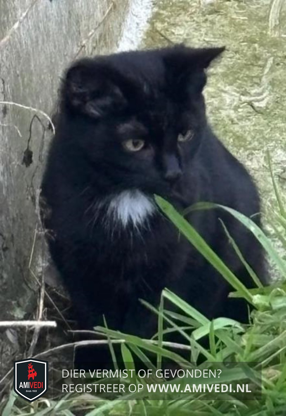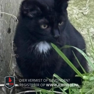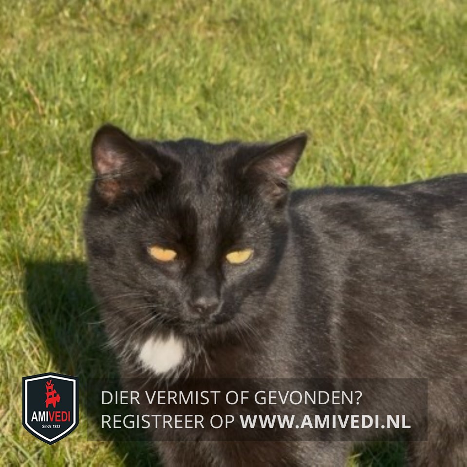 | Signalement | Europese korthaar, Zwarte vacht met klein vlekje op de borst. Gele ogen. |