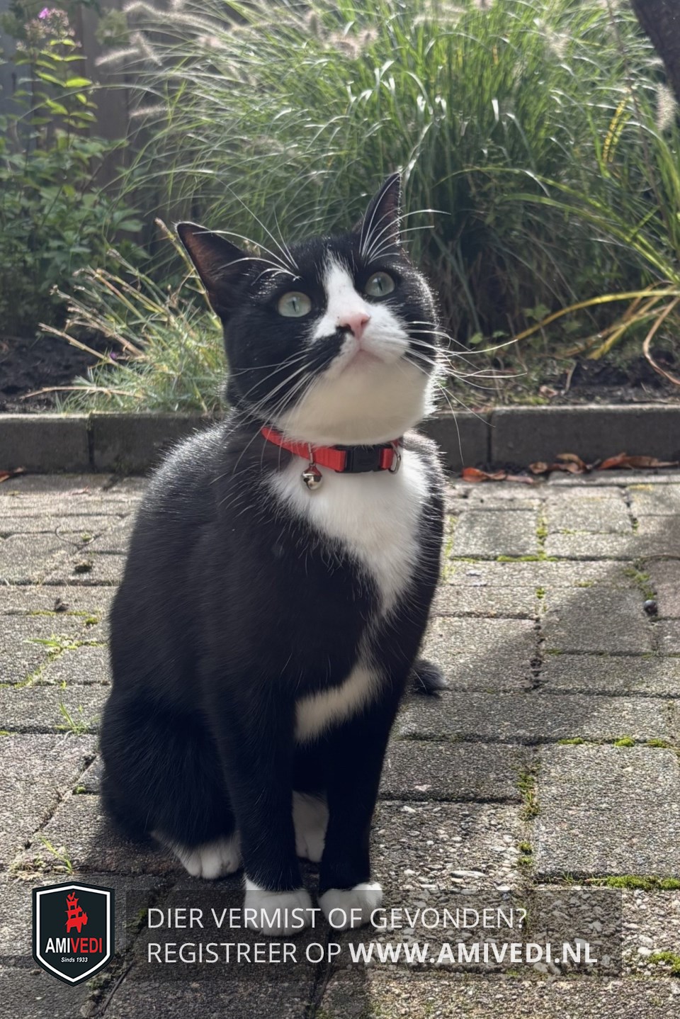 | Signalement | Europese korthaar zwart met wit. Zwart kopje met witte bles en wit snuitje, zwart aan rechterkant neusje bij de snorharen. Witte kin, witte keel, witte bef, smal streepje wit over de borst naar witte buik. Voorpootjes met witte teentjes en achterpootjes met witte kousen. Klein puntje wit aan uiteinde staart. Lou draagt een donkerblauw halsbandje met belletje. |