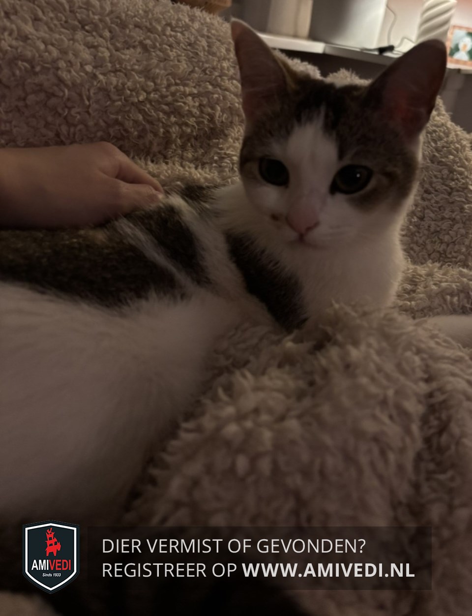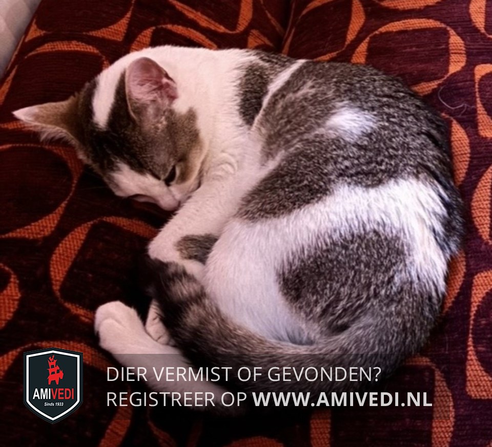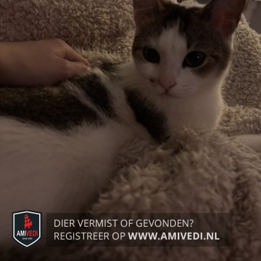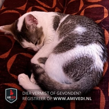 | Signalement | Wit /grijs met grijze vlekken rond de oren met in ieder geval een beetje wit aan het puntje van het rechter oor. Grijs op de rug en een grijze staart met aan het uiteinde een paar ringen. |
