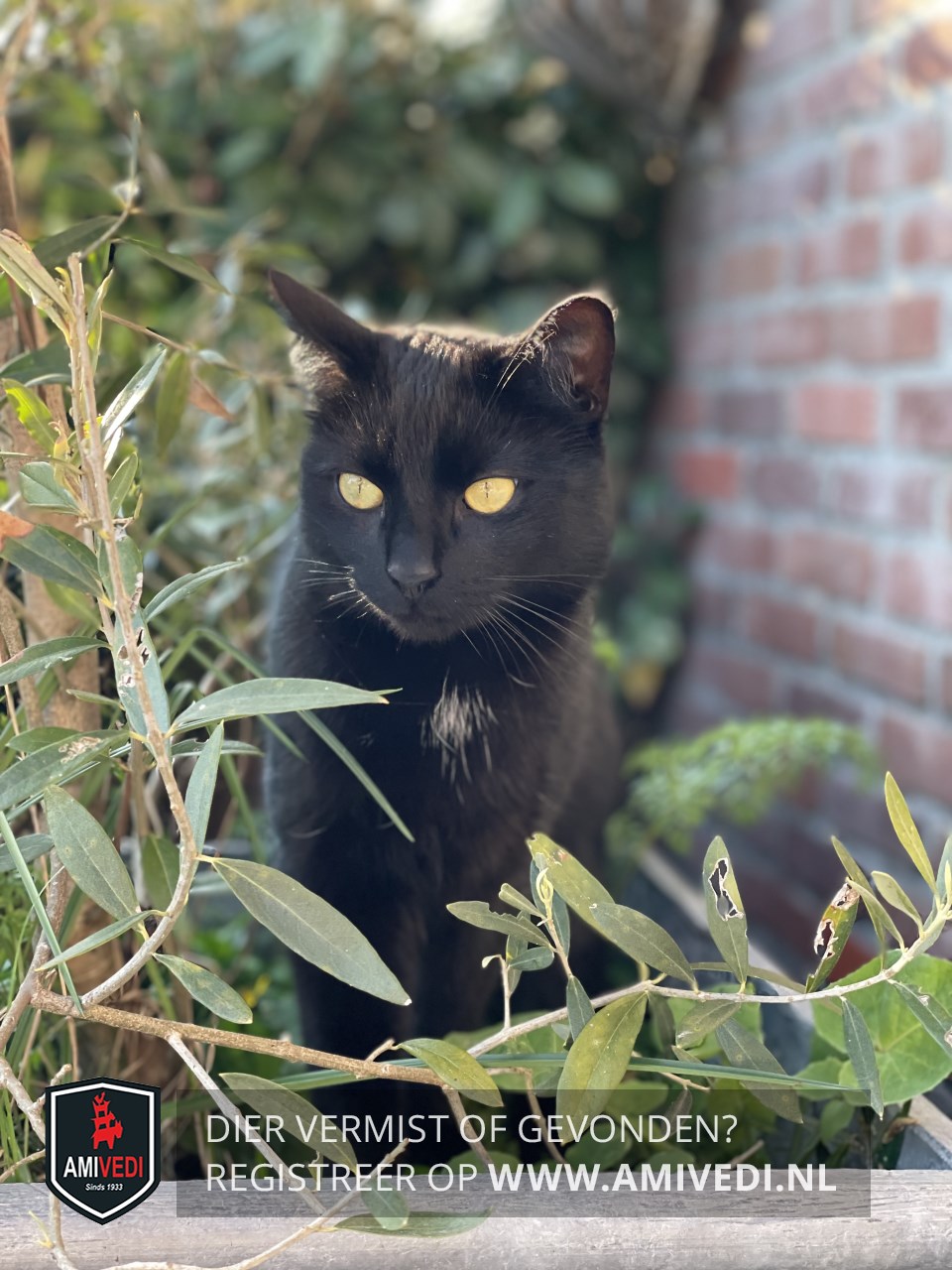 | Signalement | Zwart met een klein wit plukje op zijn borst |