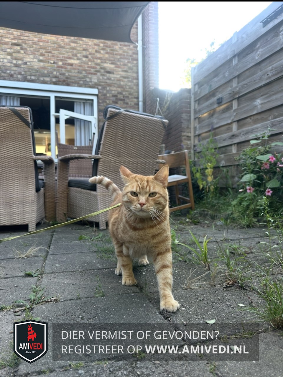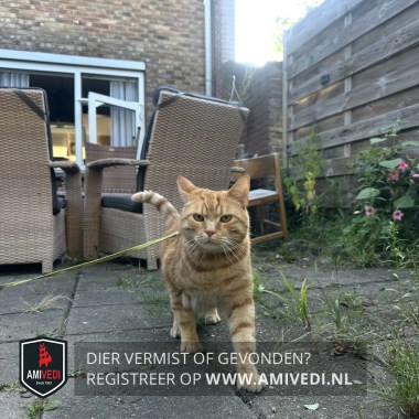 | Signalement | De kat is rood oranje van kleur. pootjes rood oranje geringd. lichtere kin. staart rood oranje geringd. |