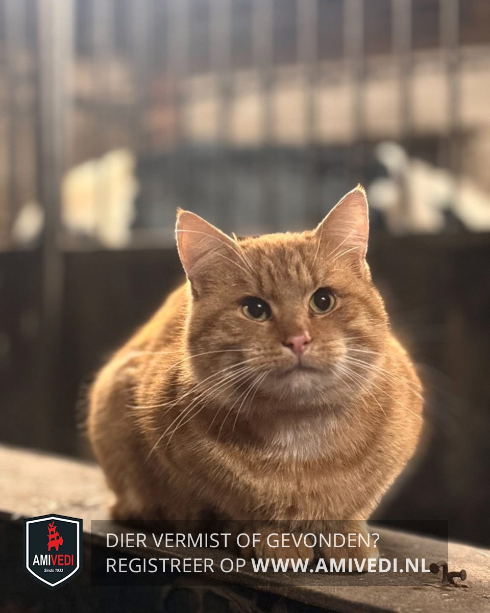 | Signalement | Cypers rood gestreept met wat wit haar op de kin en bef. Joë |
