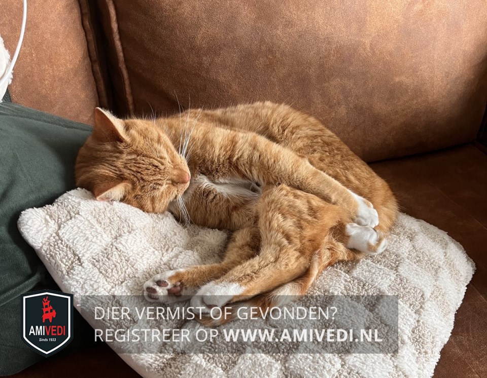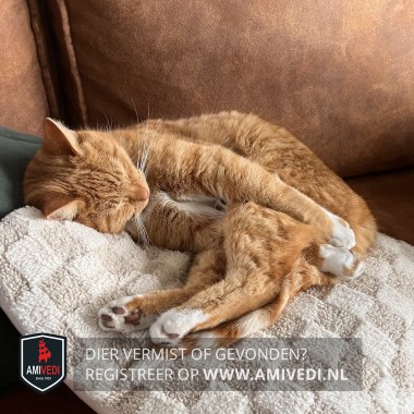 | Signalement | Rood/oranje gestreepte kat met witte hals en witte sokjes. Geen medicatie, maar wel voedselallergie. |
