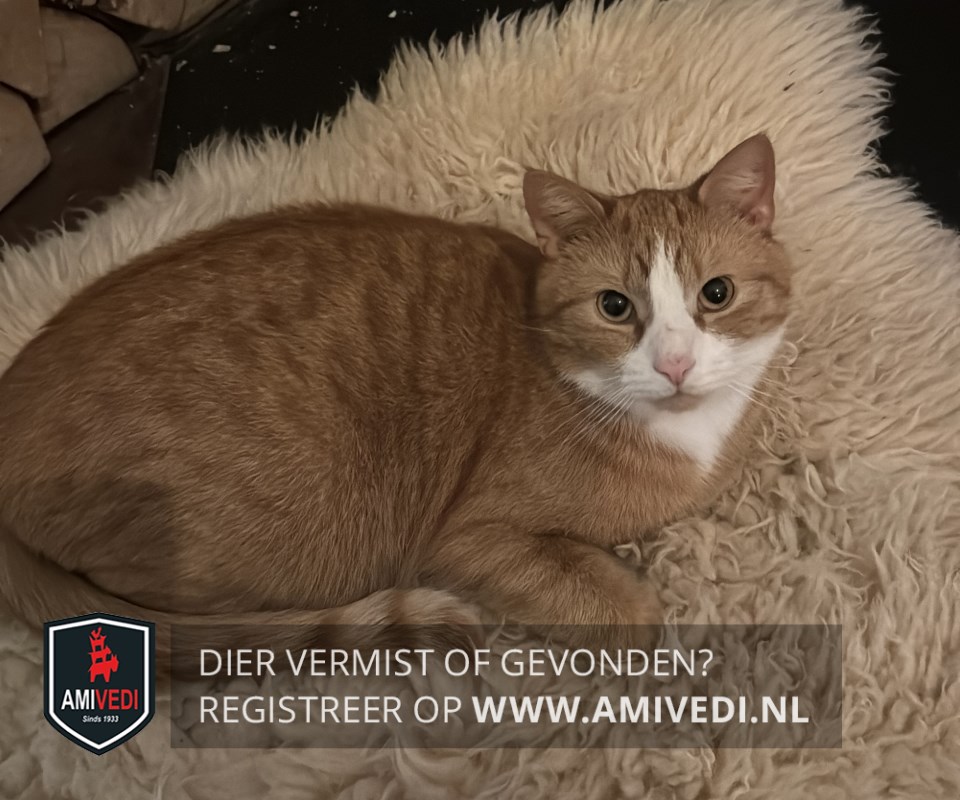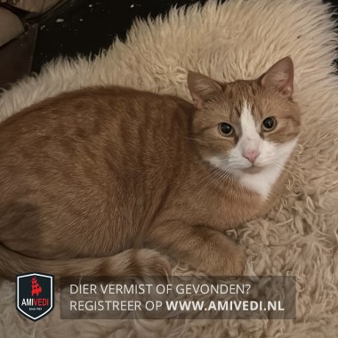 | Signalement | Cypers rood met witte snoet en bef. Van nature een bang zwerfkatje. |