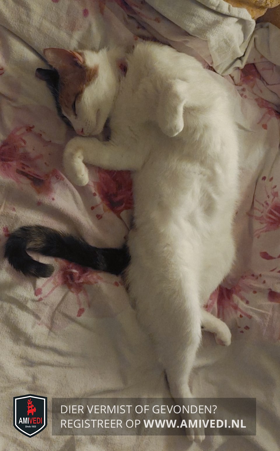 | Signalement | Nata is een kleine poes, met een vnl. witte vacht. Vanaf haar rechter oog t/m oor rood, linkerkant rood-zwart gemêleerd. Links naast de neus een klein rood vlekje. Onder rechter achterpoot rood. Zwart-rood gemêleerde staart. Haar nek is kaal gekrabt vanwege een huid allergie. Ze heeft een ruitvormige zwarte vacht in haar nek, en een hartvormig zwart figuur op haar achterste. Ze mist 17 tanden vanwege een gebitsrestauratie. |