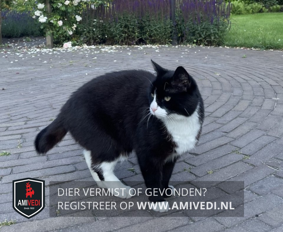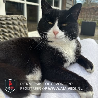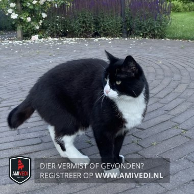 | Signalement | Kat is het meeste zwart .ze neus borst en bef is wit. pootjes zijn wit. Korte zwarte staart zwart. Achter poten zijn meer wit . |