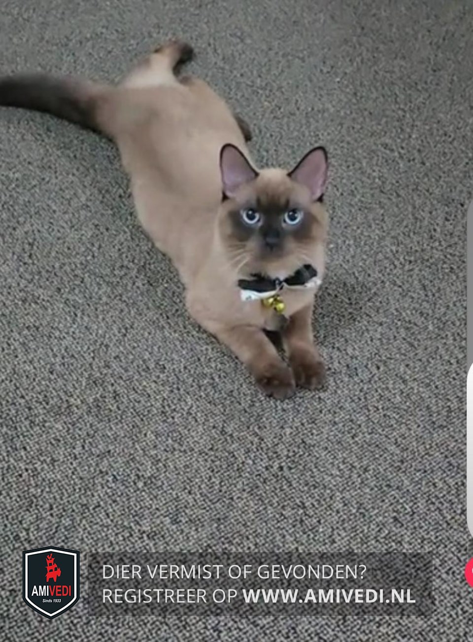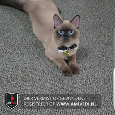 | Signalement | Kat is bruin grijs. Het masker is bruin voorpootjes bruin staart is ook bruin Kat is grijs bruin.Achter pootjes ook donker. |