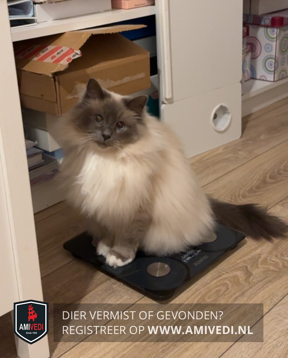 | Signalement | Nana is voornamelijk langharig wit met een goudbruine rug. Bruin kopje. Voorpootjes zijn bruinig met witte sokjes. Bruine staart. Ze heeft blauwe ogen die er rood uit kunnen zien in het donker. Ze heeft vaak vieze oogjes en dan vooral de linker waar ze hele vaak mee knippert alsof er iets in zit. |