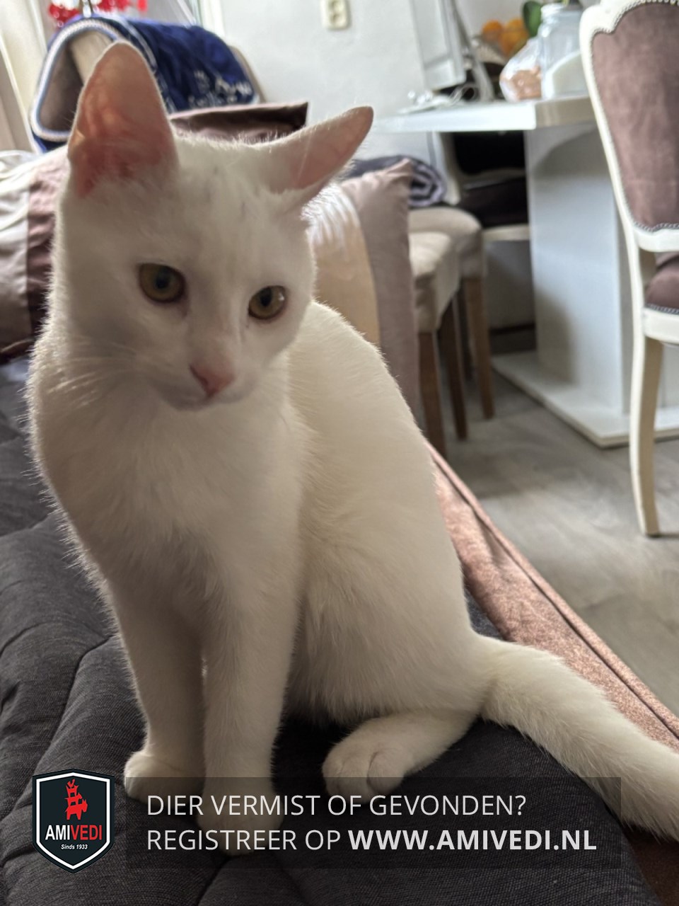 | Signalement | Vacht egaal wit met heel licht enkele donkere stipjes op voorhoofd. |
