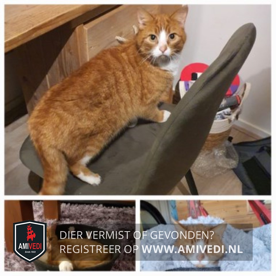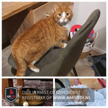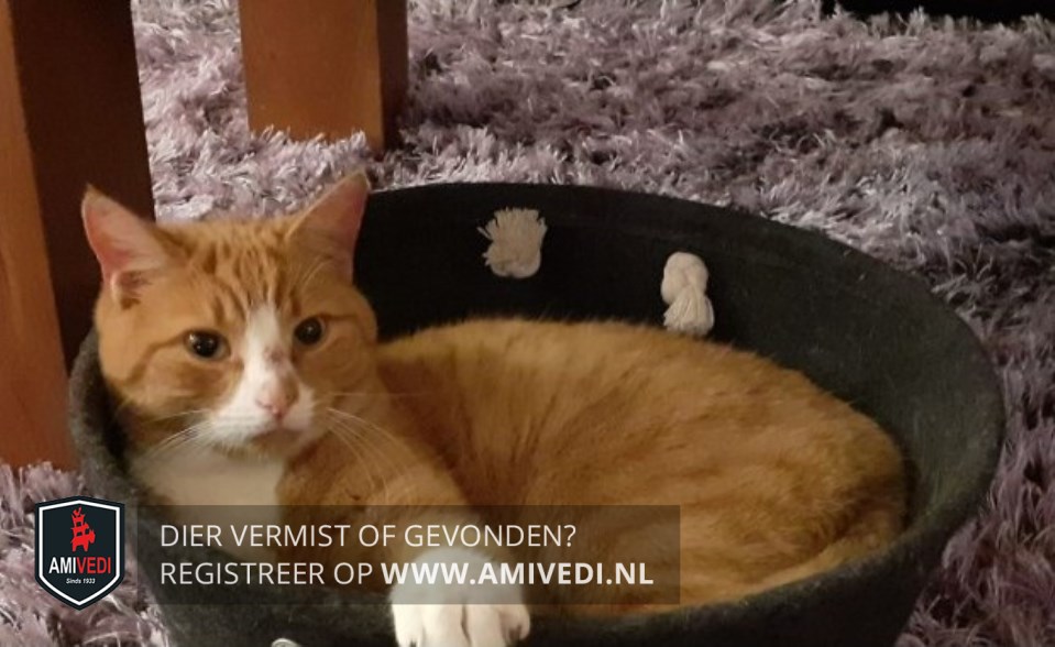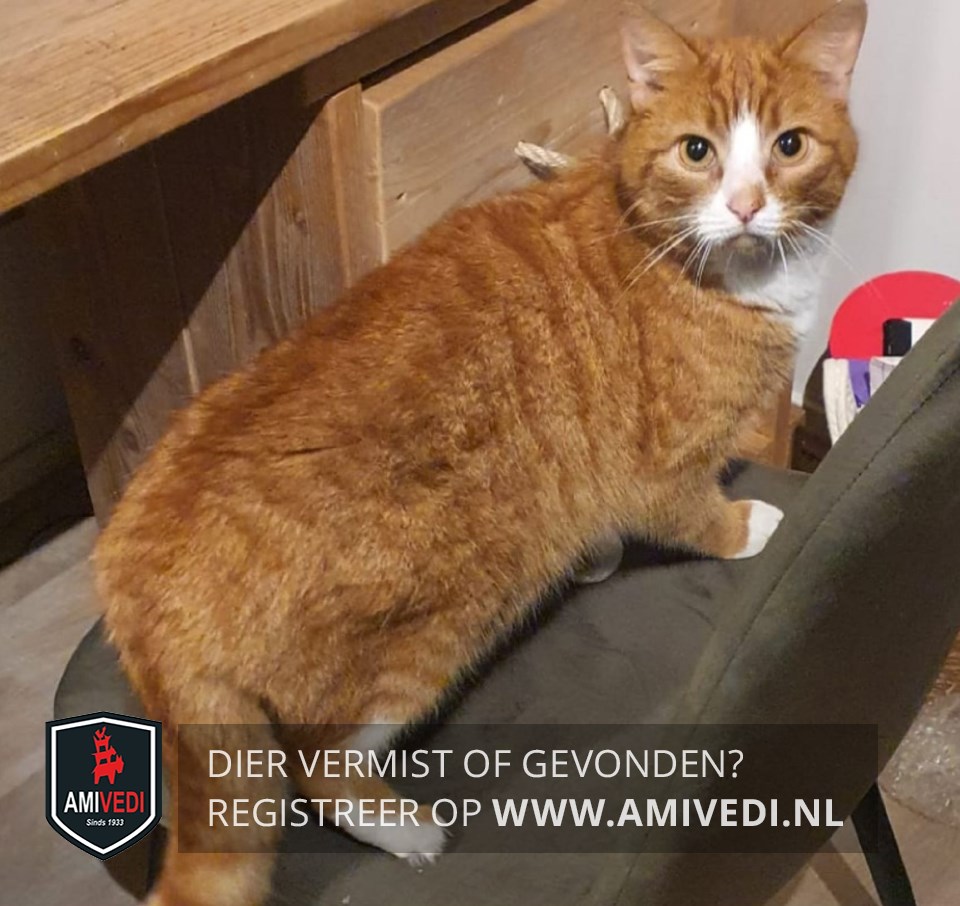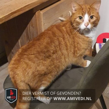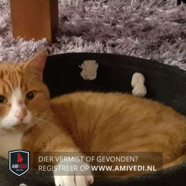 | Signalement | Cypers rood gestreept met witte bles, snuit, hals, bef, borst. Rode kin. Voorpoten witte teentjes. Mist een paar teentjes aan zijn achterpoot. Gebruikt daardoor zijn achterpoot niet volledig |