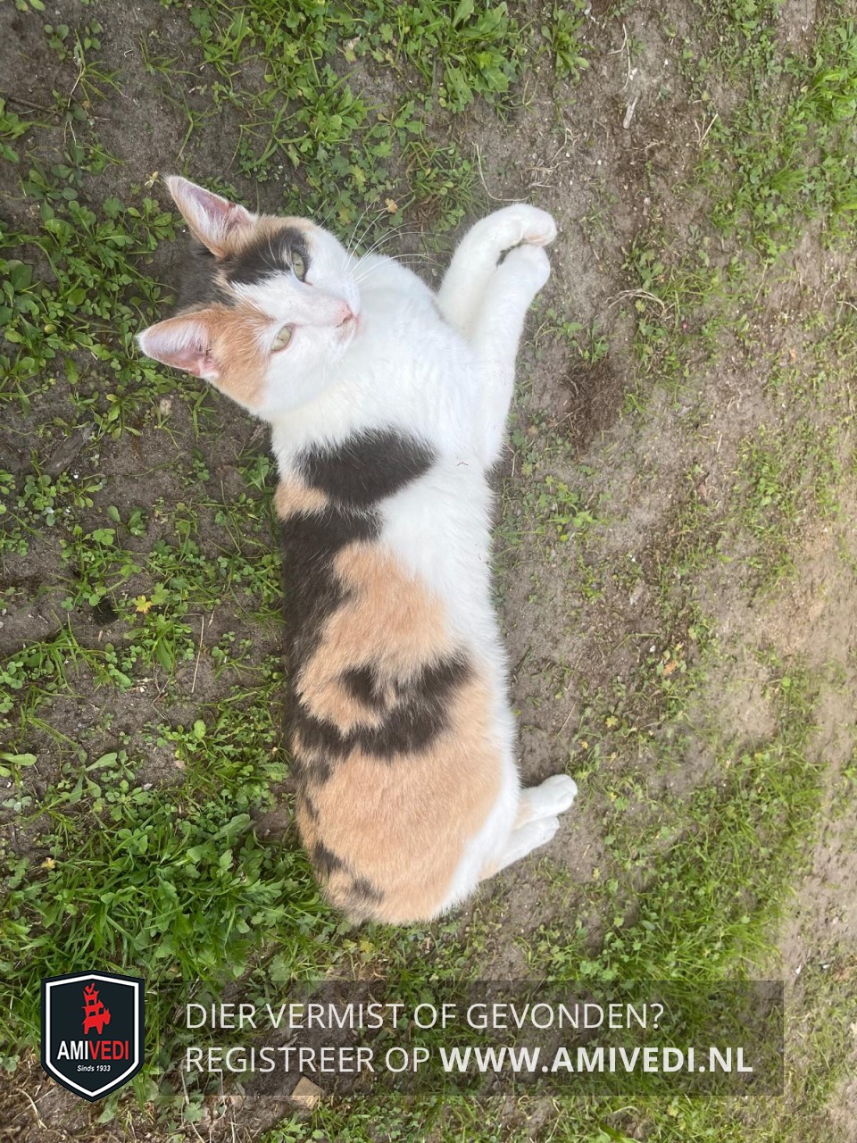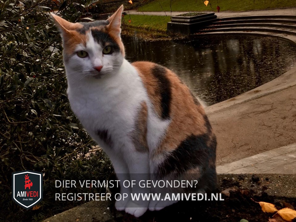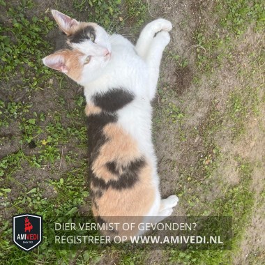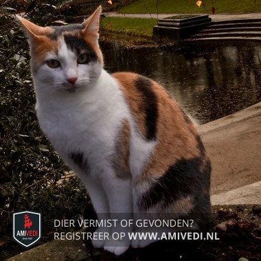 | Signalement | Wit, roood/ oranje met zwart gevlekt. Witte snuit met paar vlekjes bij neus. Witte hals, bef, borst ( met rode vlek) , buik, pootjes. Boven rechteroog wit rood, boven linkeroog meest zwart. Door een ongeval in het verleden erg schuw geworden. |