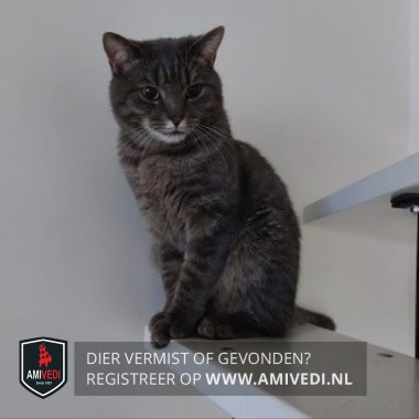 | Signalement | Grijs zwart gestreept, licht grijs bij het neusje en kinnetje, heeft een kras op het oor |