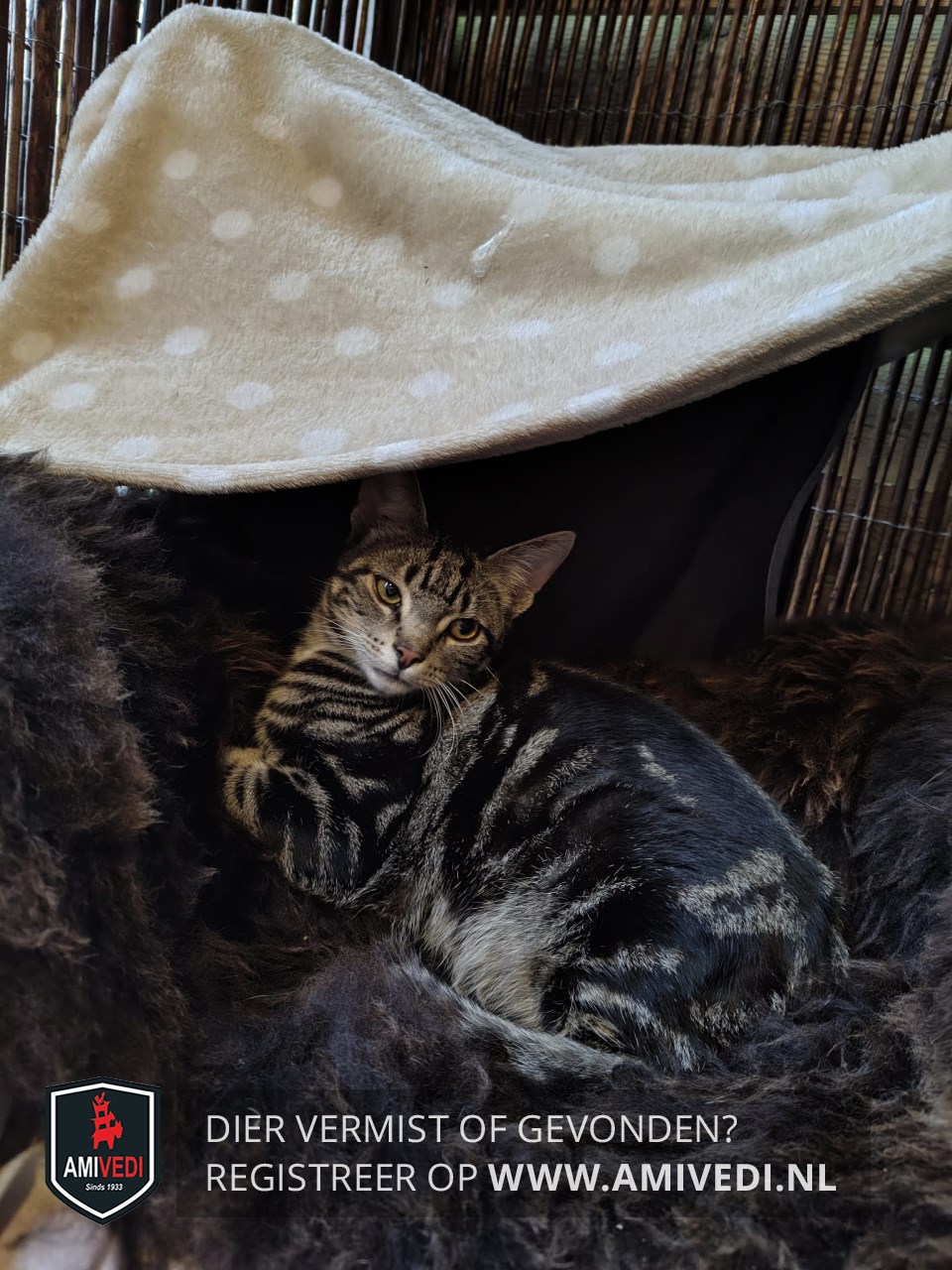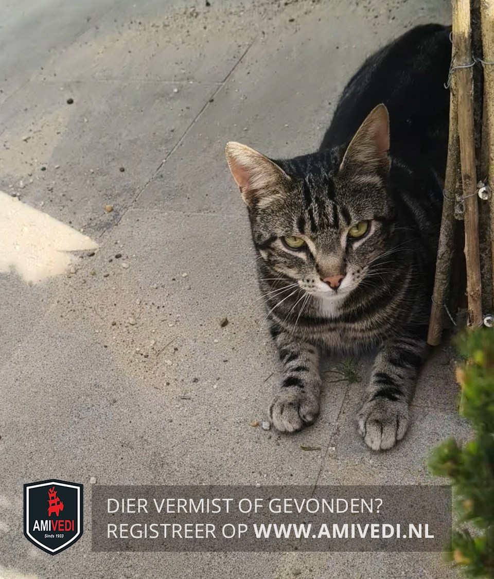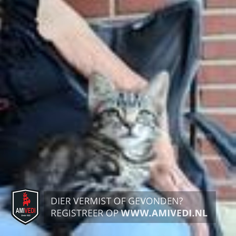 | Signalement | Cypers grijs zwart gemarmerd met beige kinnetje en een heel klein wit vlekje op de borst. |