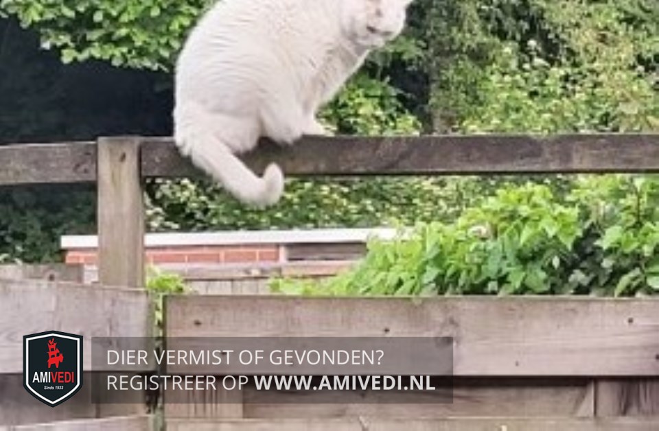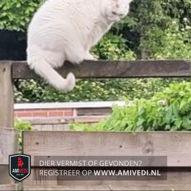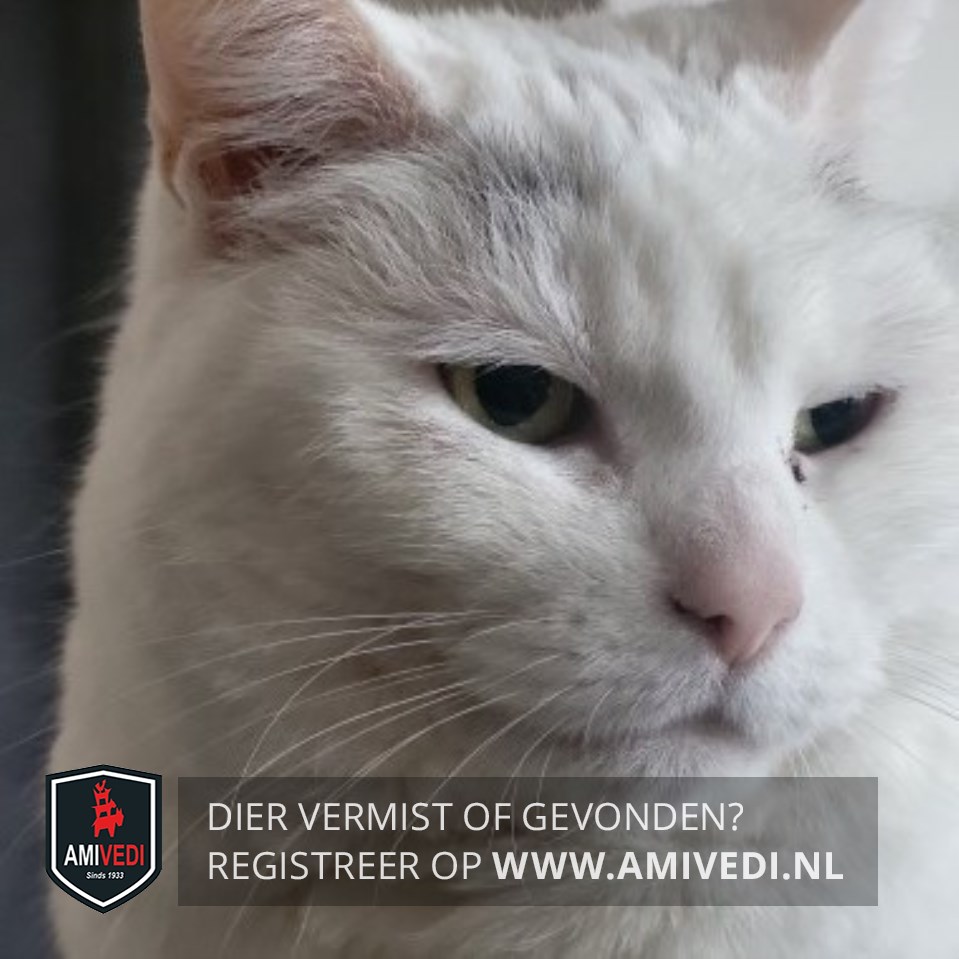 | Signalement | Europese korthaar, witte / grijs egaal Witte kat met boven haar rechter oog/ oor een klein grijs vlekje. |