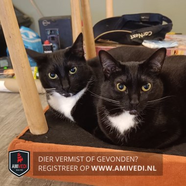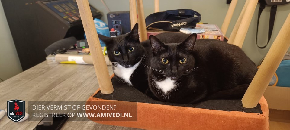 | Signalement | Klein overwegend zwart katje met witte bef, klein beetje wit op onderbekje, twee zwarte voorpootjes en twee witte achter pootjes. |