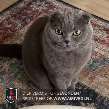 | Signalement | helemaal egaal grijs. Oortjes naar beneden. |