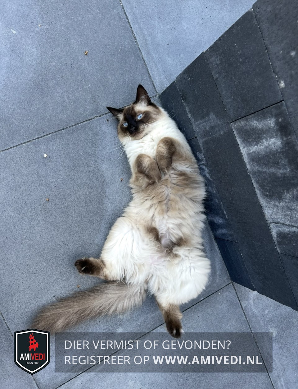 | Signalement | Wit met bruin, beige en zwart. Blauwe ogen. |