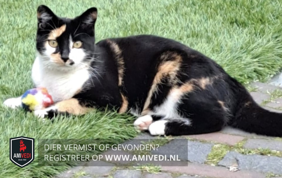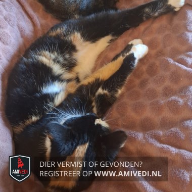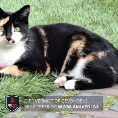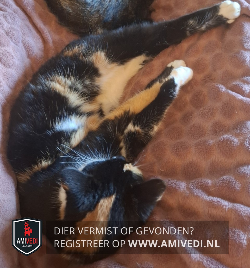 | Signalement | Zwart met rood/oranje en wit, op beide oortjes rood/oranje vlekje boven rechteoog rood/oranje vlekje, zwarte neusbrug, rechterbovenkant bekje rood/oranje vlek, linkerbovenkant bekje zwarte stip, witte kin, bef en borst, buik veel rood/oranje maar ook wit, rug en flanken voornamelijk zwart, met over de flanken ook iets rood/oranje, poten witte voetjes |