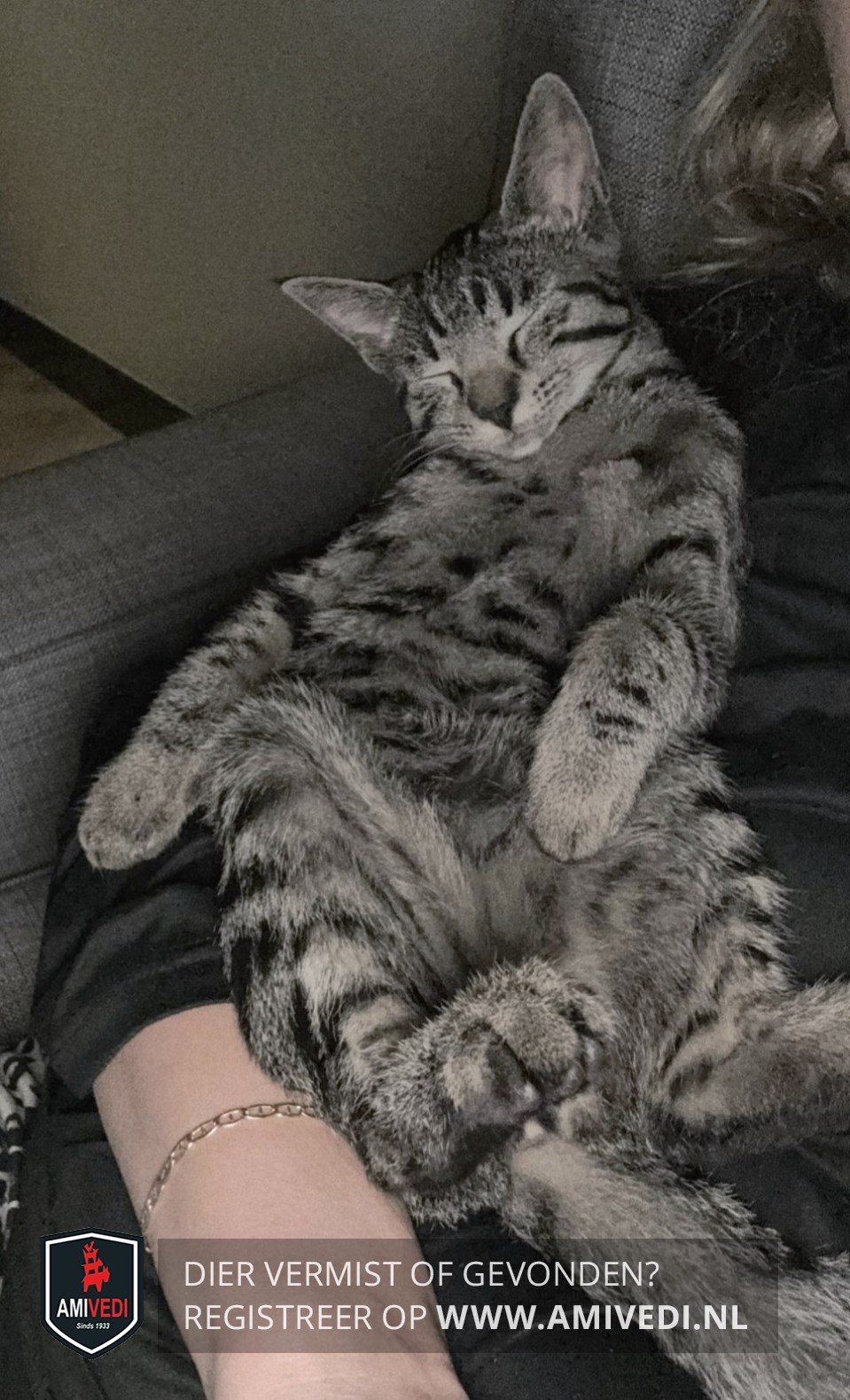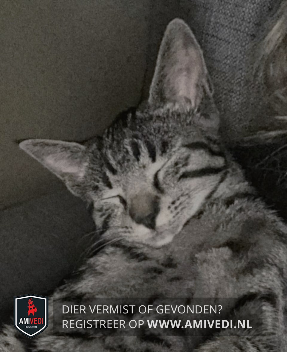 | Signalement | Kleine poes, geheel cypers grijs-zwart gestreept. |