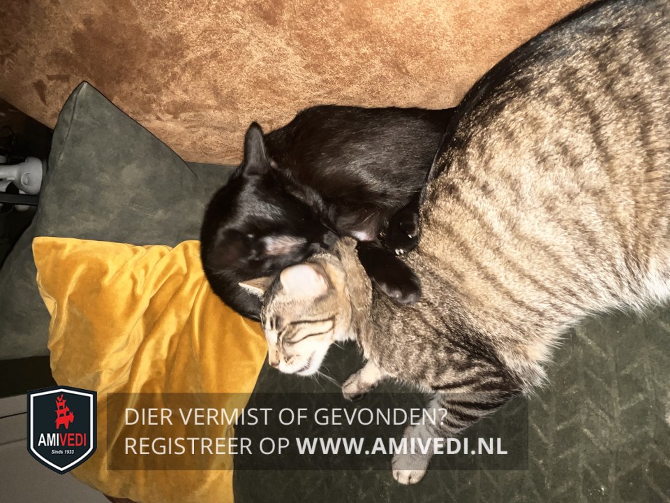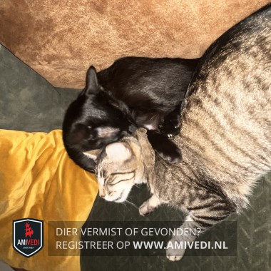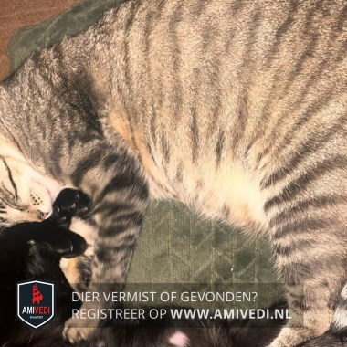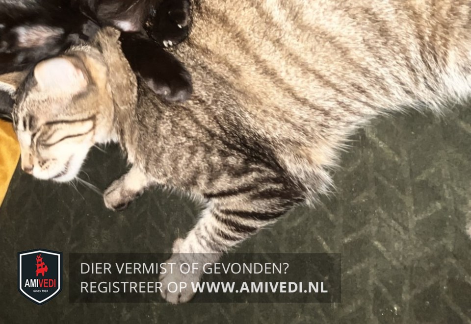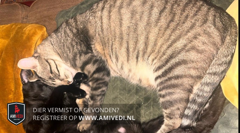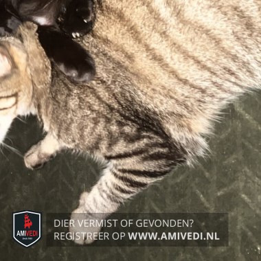 | Signalement | Cypers grijs zwart gestreepte kater met een gestreept kopje en een witte bek en kin, onderkant heeft een witte streep over de buik. Cypers grijs zwart gestreept lijf en pootjes met aan de voorpootjes witte voetjes, achterpootjes geheel gestreept. |
