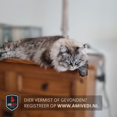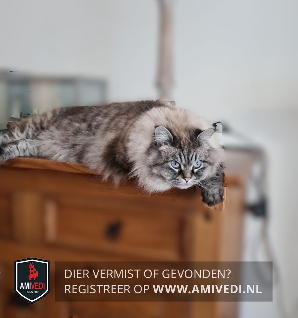 | Signalement | Ragdoll-kater in grijstinten met cyperse streeptekening op kop en lijf. Brede lichte kraag |