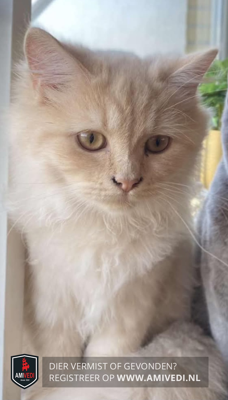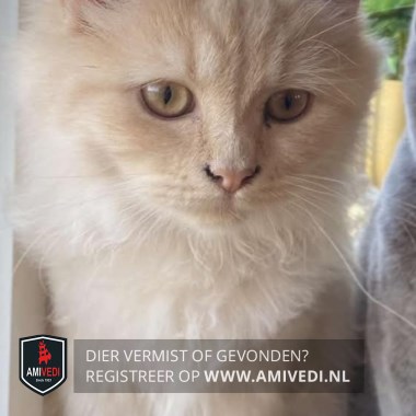 | Signalement | Egaal beige van kleur met wat donkere strepen boven de ogen. |