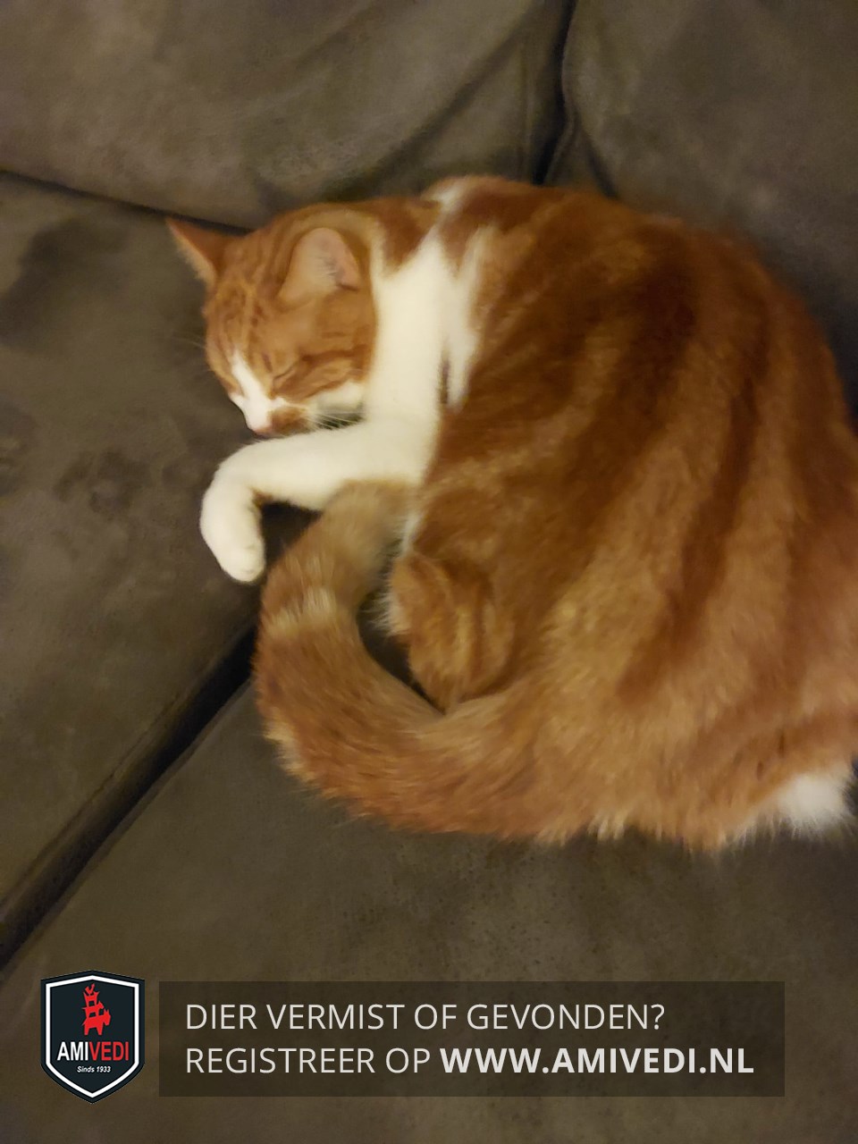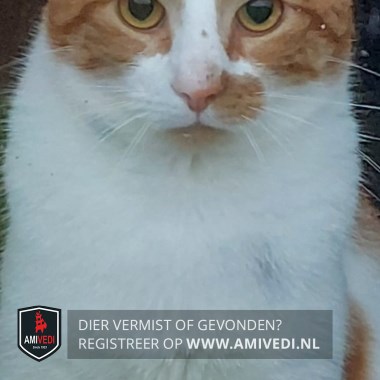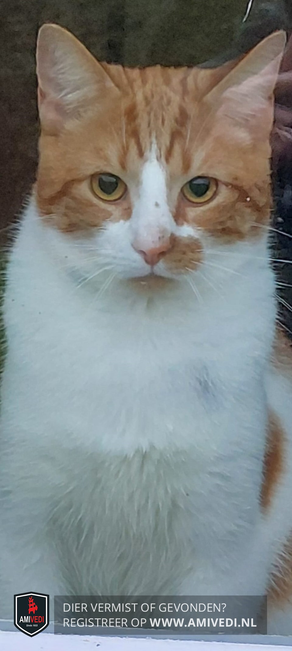 | Signalement | Oranje kop, rug, staart, witte bles, oranje vlek linkerkant neus, witte borst, en pootjes. |