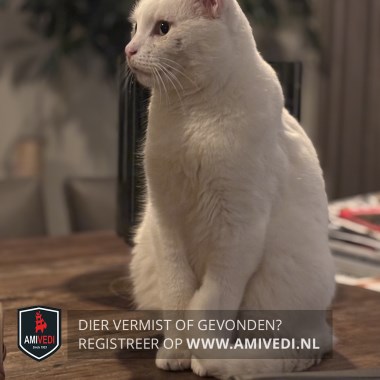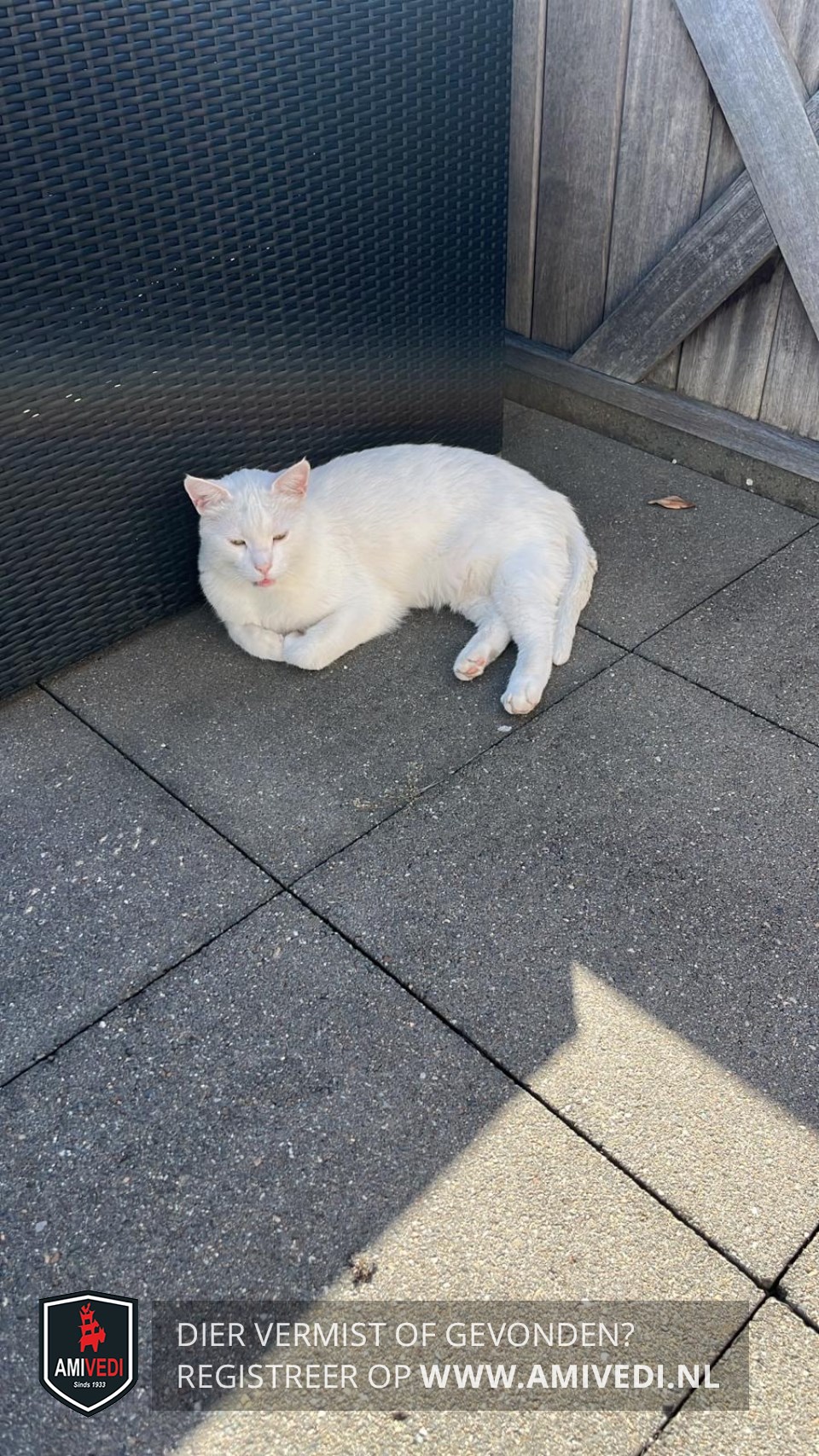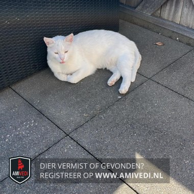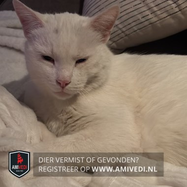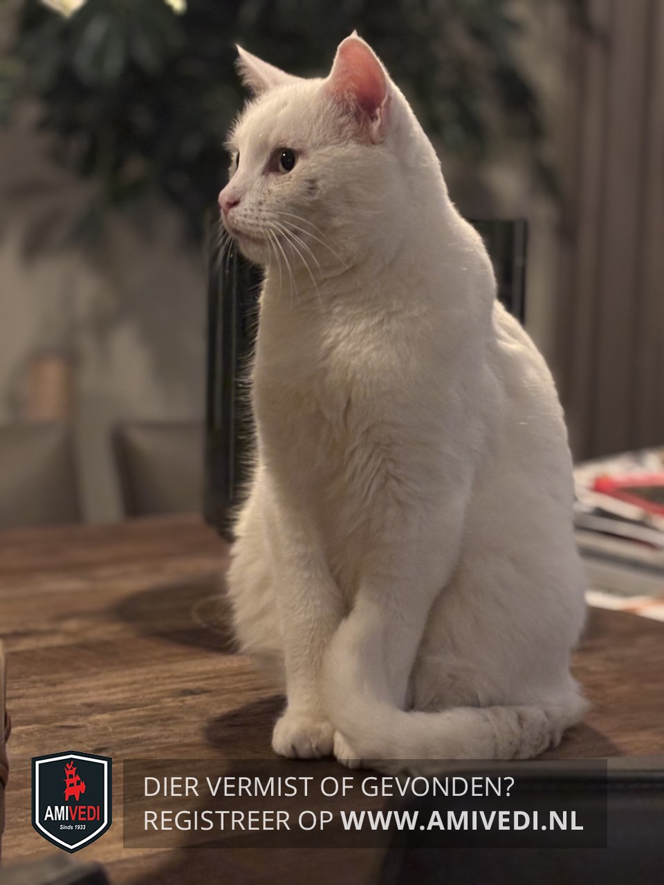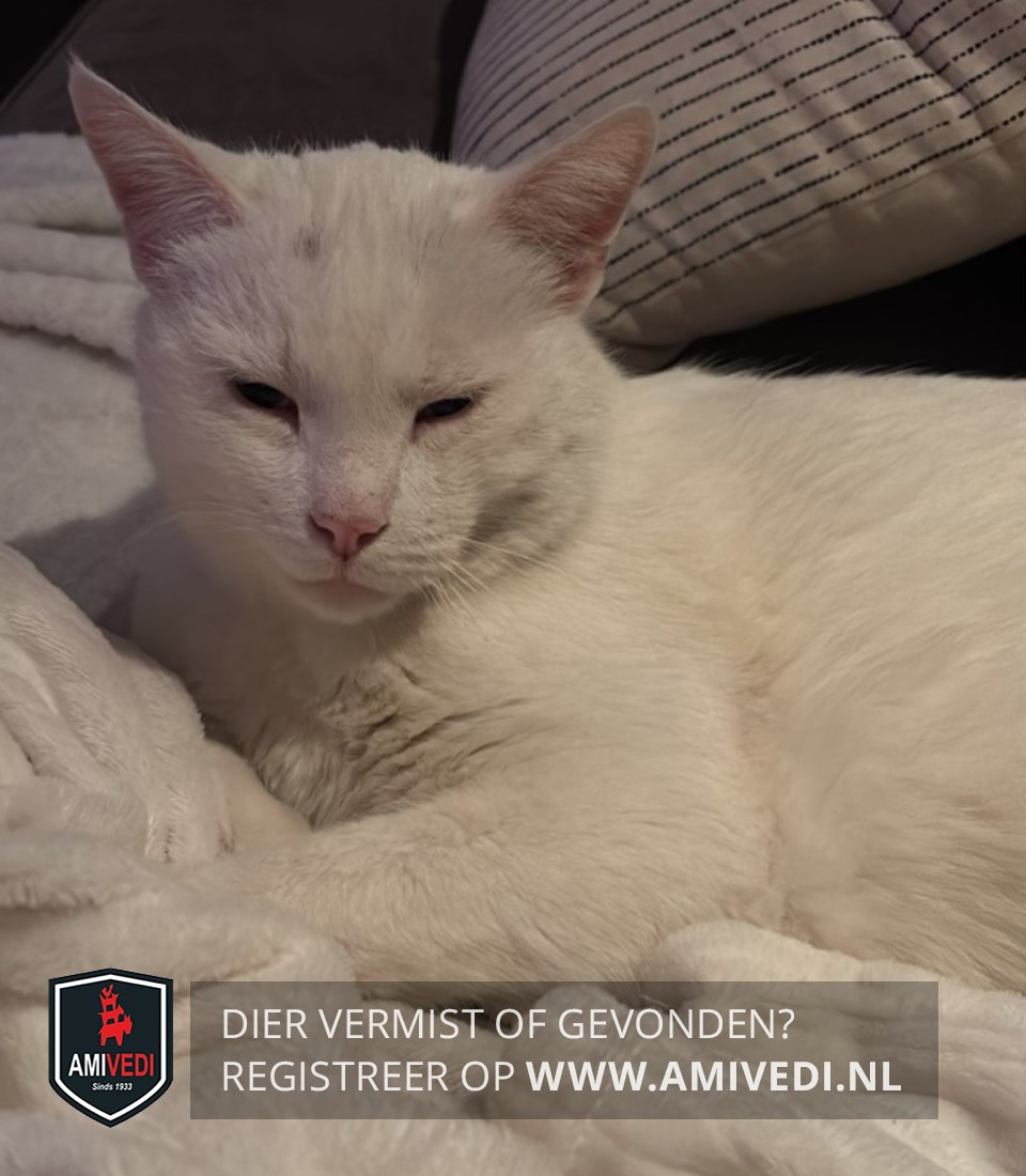| Signalement | Geheel wit met klein grijs vlekje links op de kop |