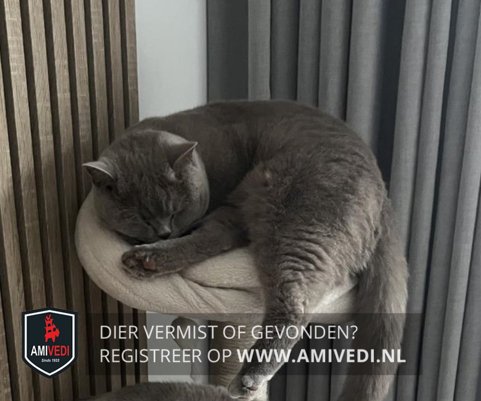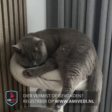| Signalement | Brits korthaar kater, volledig grijs. |