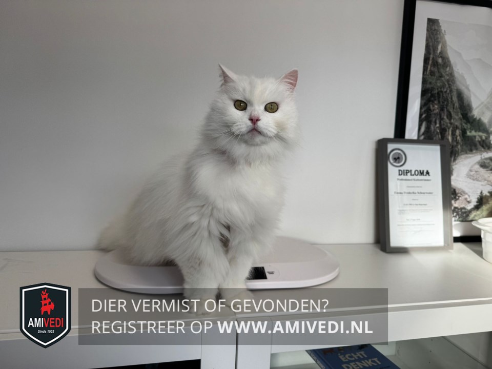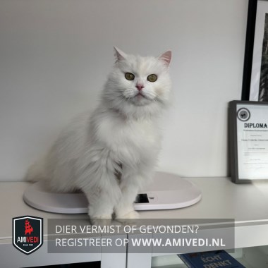 | Signalement | Geheel wit Buik recent getrimd |