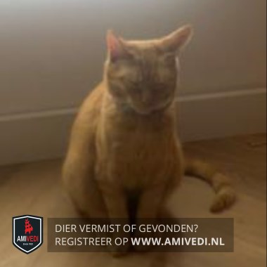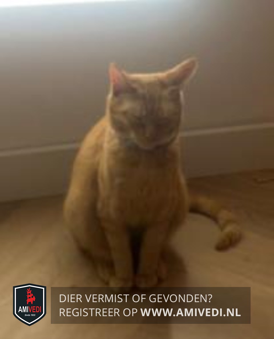 | Signalement | De poes is cypers gestreept in de kleur oranje / rood. De poes heeft een roze halsband met een belletje en een grijze vlooienband. |