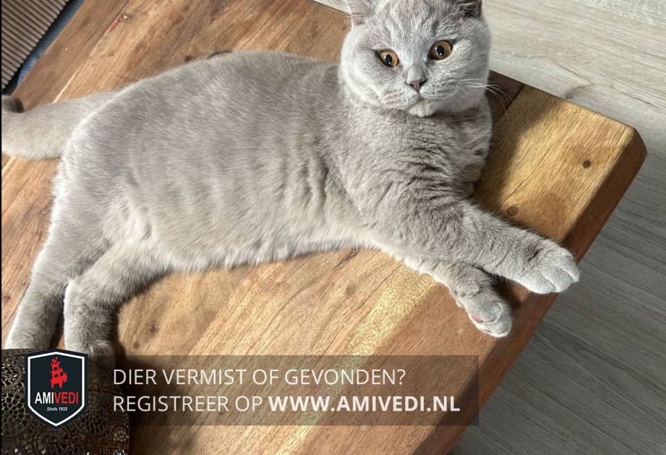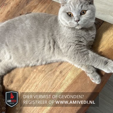 | Signalement | Britse korthaar in de kleur grijs (Lilac). De ogen van de kater zijn oranje. |