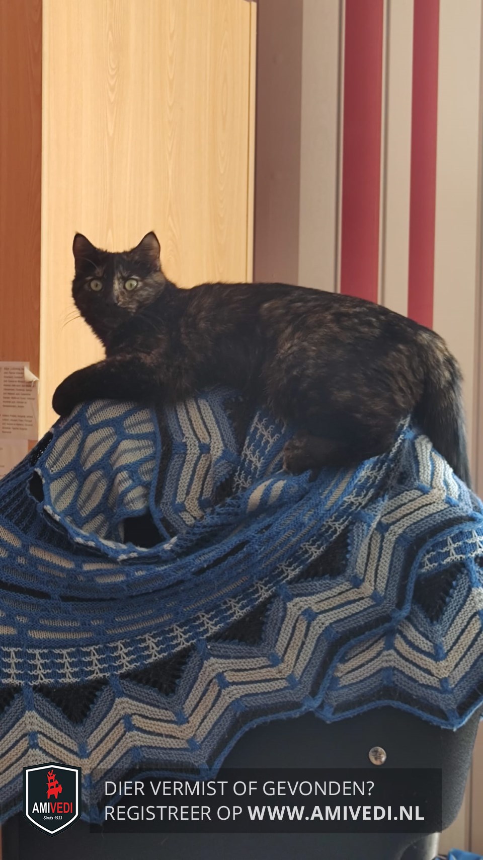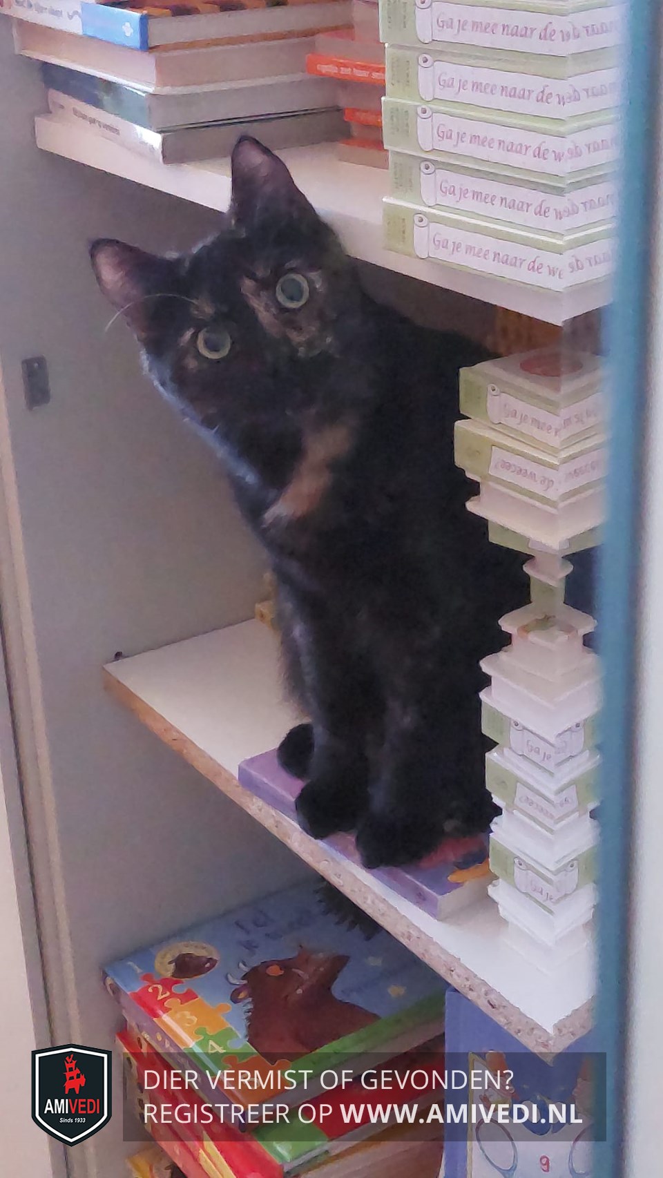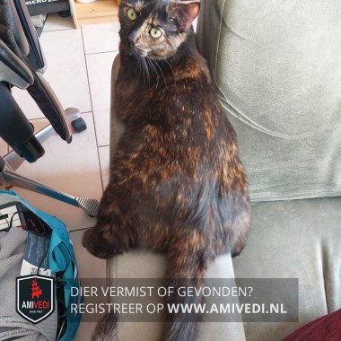 | Signalement | Schildpad poesje: Rode streep over de neusbrug, vlek op de borst, gemeleerde vlekjes over de hele vacht. |
